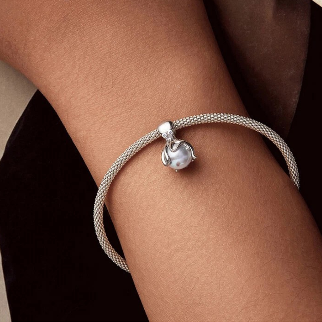 Handcrafted in 925 sterling silver, this charm features a graceful octopus holding a glowing pearl between its tentacles — a reminder that even in the deepest waters, beauty and light can always be found.